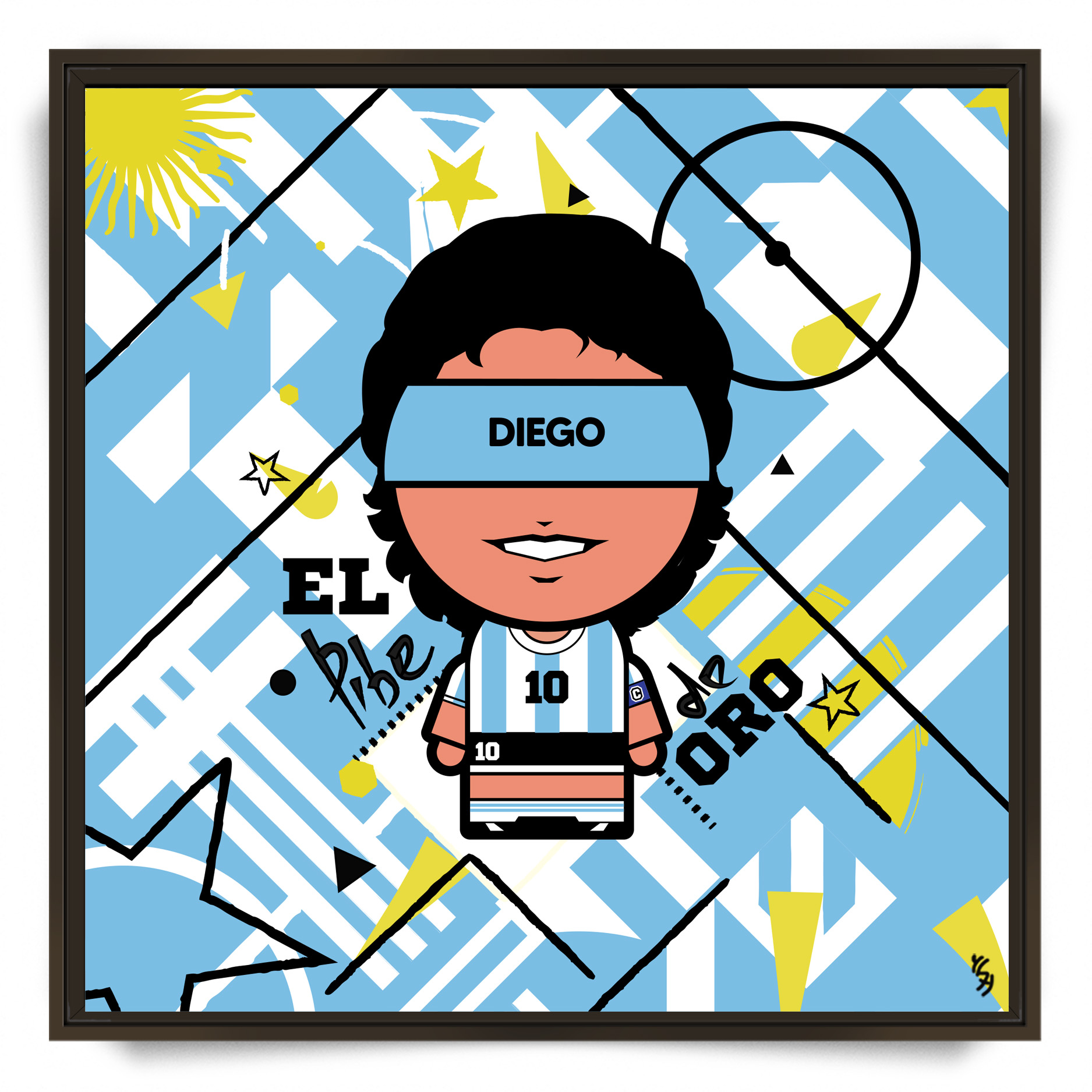 YSY a imaginé une œuvre vibrante qui nous replonge en 1986, l’année où le génie de Diego a transcendé le football pour atteindre le summum footballistique. Cette composition dynamique célèbre l’ascension de l’enfant prodige devenu une icône mondiale lors de la Coupe du Monde au Mexique.