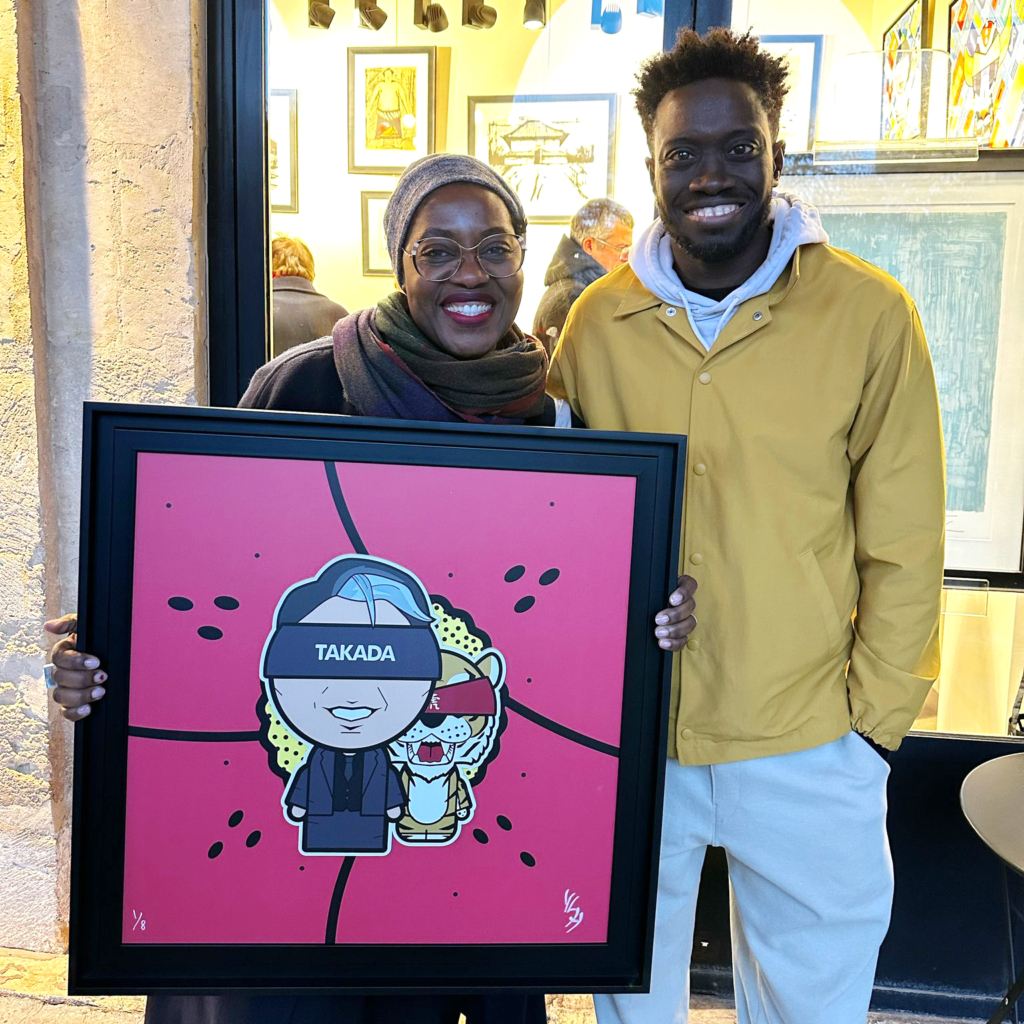 Le point d’orgue de la soirée ? La visite surprise de la talentueuse Claudia Tagbo. Venue découvrir les créations, elle a apporté avec elle son énergie légendaire et son regard pétillant sur le travail d’Y-CONS. Un moment de partage authentique, immortalisé par quelques clichés mémorables devant les œuvres, qui confirme que l’art est avant tout une question de rencontre.
