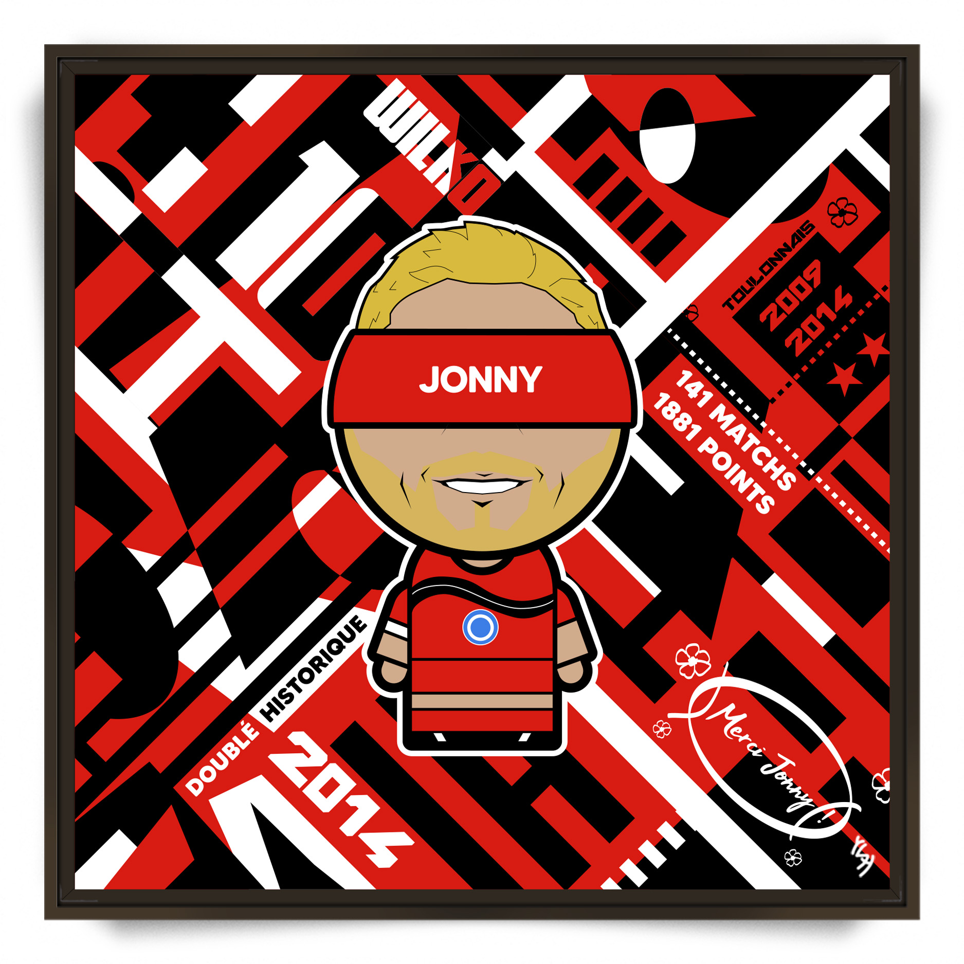 YSY a créé un hommage vibrant à l’une des plus grandes légendes du rugby mondial, capturant l’apothéose de sa carrière lors de son passage légendaire au RC Toulon. Cette composition graphique célèbre le lien indéfectible entre l’ouvreur anglais et le public varois.