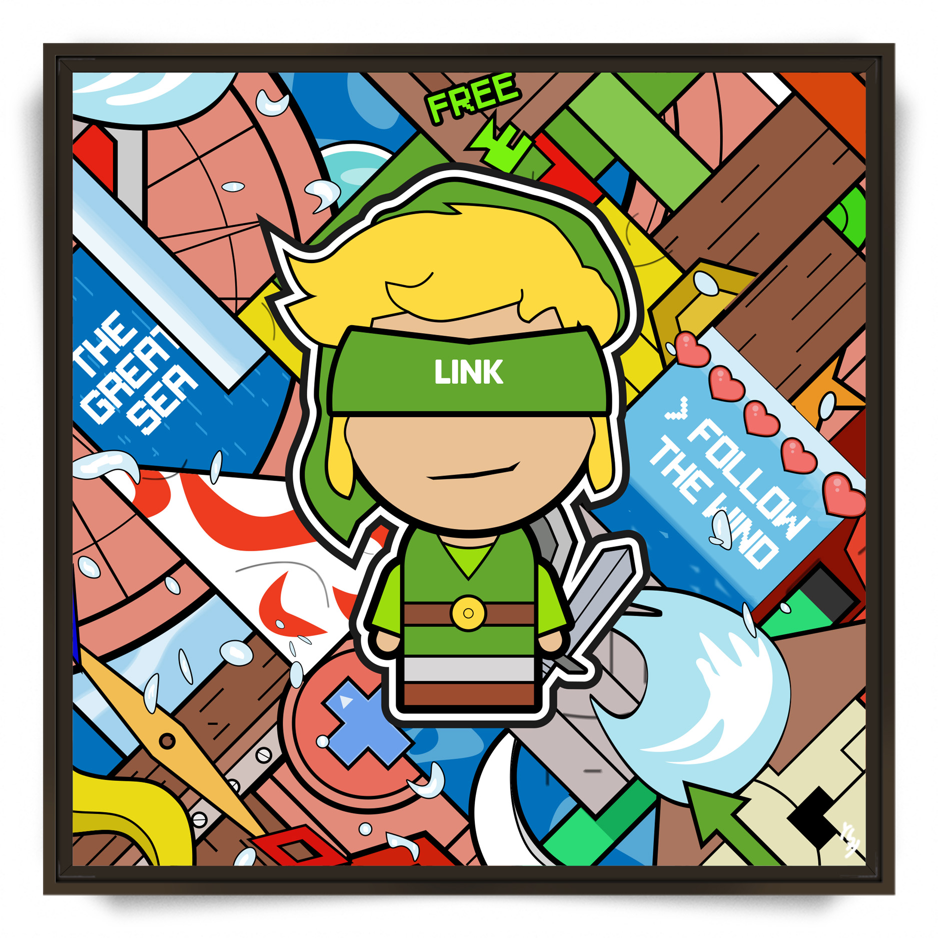 L’univers de YSY s’imprègne de la magie de Nintendo avec cette œuvre dédiée à Link, capturant l’esprit d’aventure et de liberté de la saga The Legend of Zelda. Cette composition dynamique nous transporte directement sur « The Great Sea », hommage aux quêtes épiques du héros au bonnet vert.